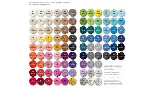 Badteppiche aus Baumwolle, Polyacryl- und Polyamidgarn.