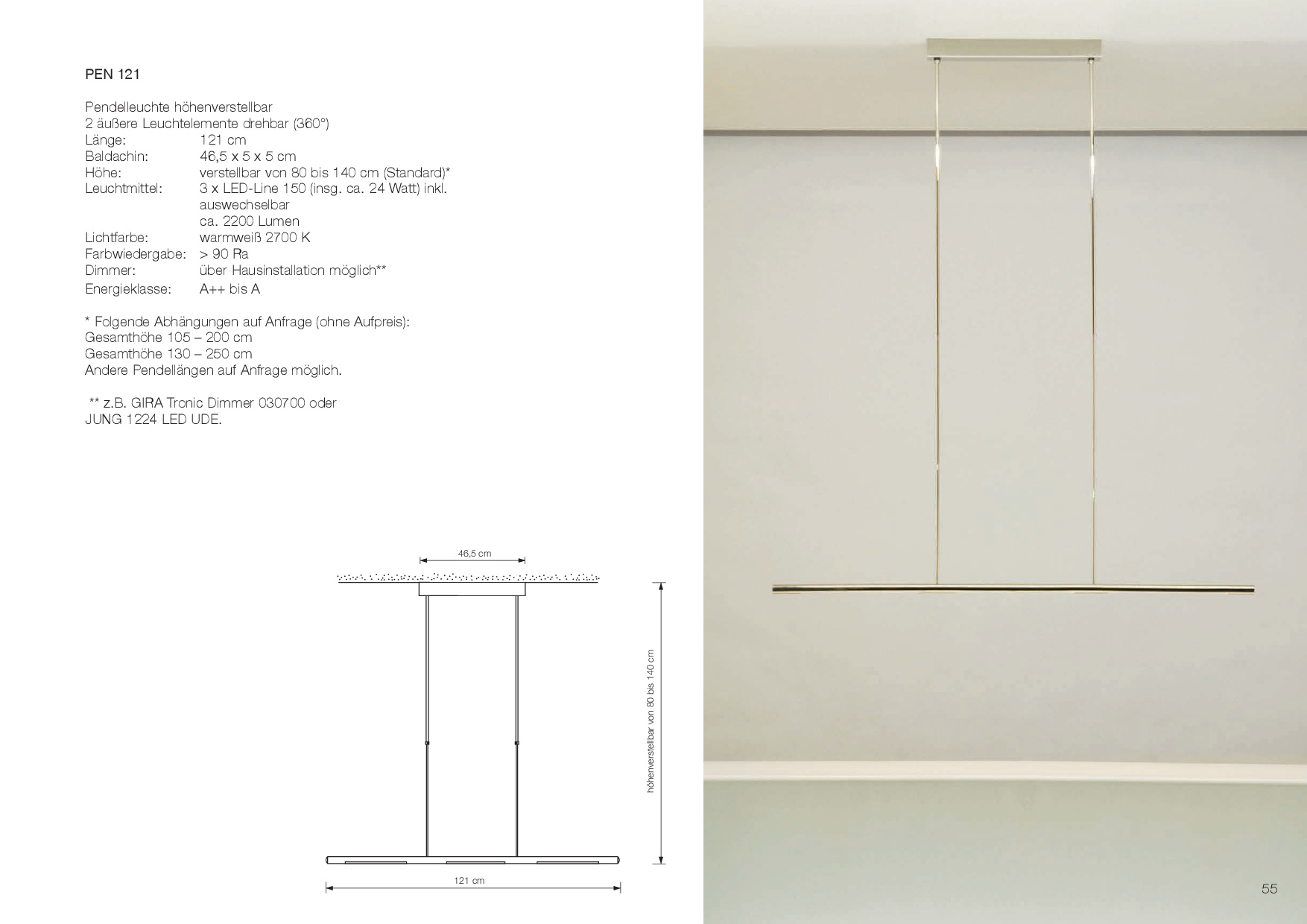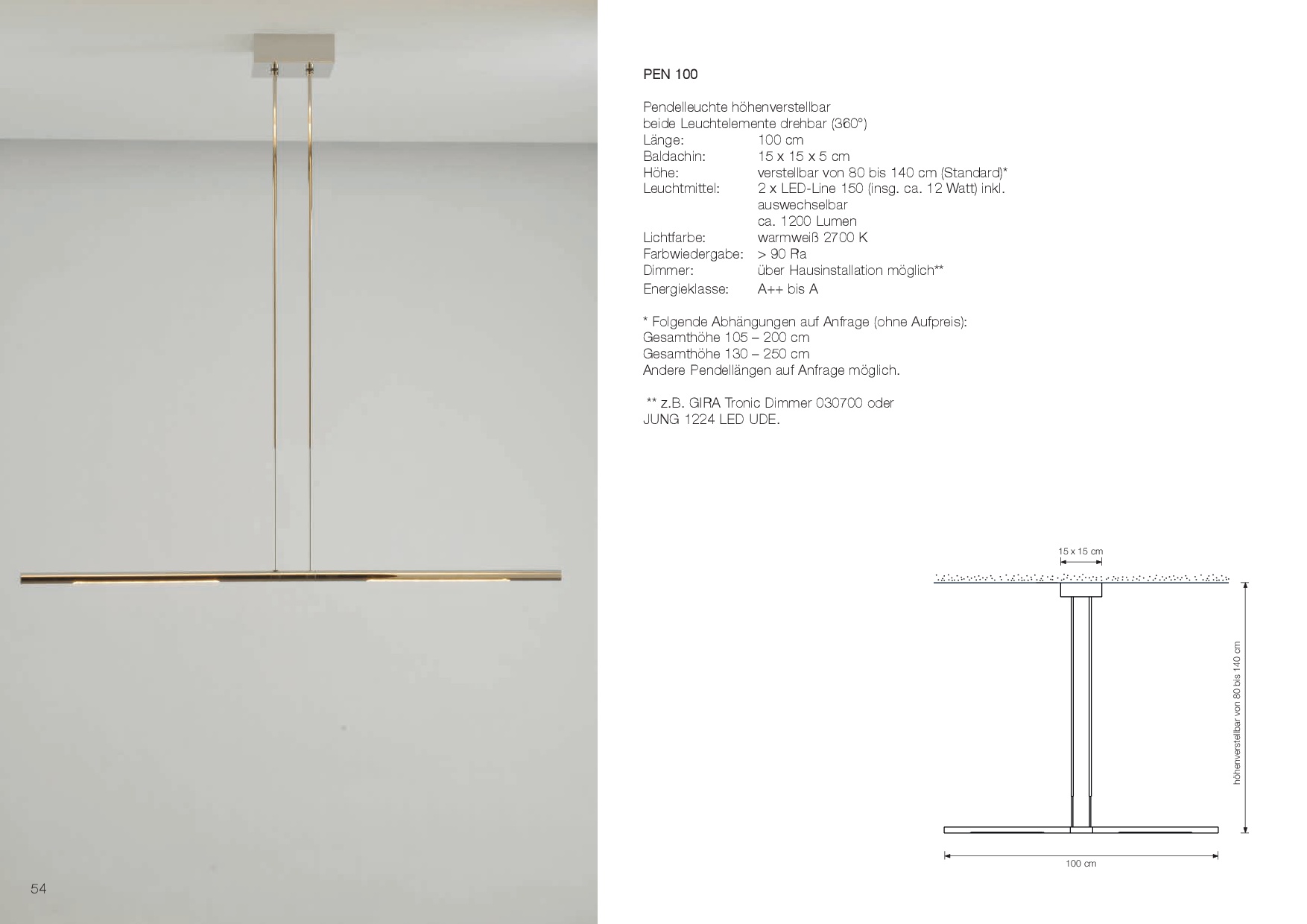 Länge: 100 cm (PEN 100), 121 cm (PEN 121), 142 cm (PEN 142).