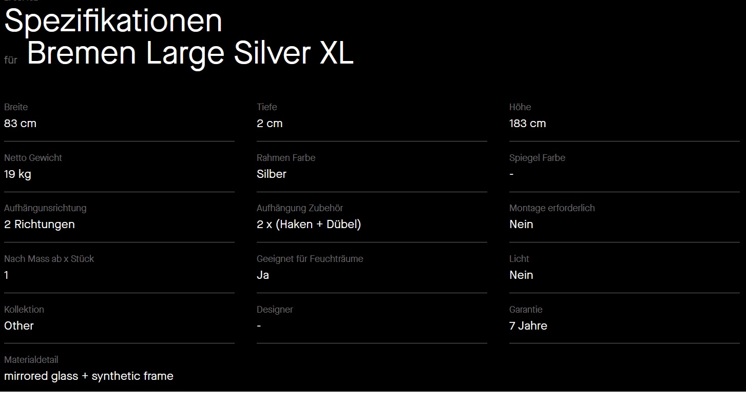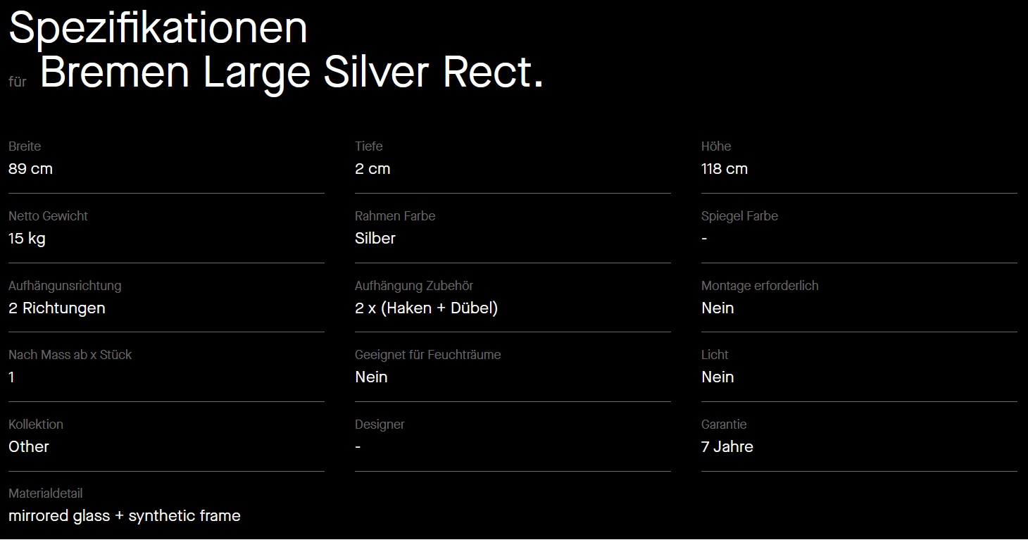 Ein Spiegel in gebürsteter Aluminiumoptik, der moderne Eleganz ausstrahlt und mit Präzision gefertigt ist. Der Kunststoffrahmen sorgt für Langlebigkeit, ohne Kompromisse beim Stil einzugehen. Sein schlankes Design wird durch eine glänzende Innenkante akzentuiert, die die Rahmenfarbe nahtlos ergänzt. Die fesselnde gebürstete Oberfläche polarisiert mit der gebürsteten Oberfläche und verleiht ihm gleichzeitig Wärme und stilvolle Eleganz. Der Spiegel Bremen kann mit jeder Einrichtung kombiniert werden. Er kann in zwei Richtungen aufgehängt werden und ist nur in gebürsteter silberner Aluminiumoptik erhältlich.