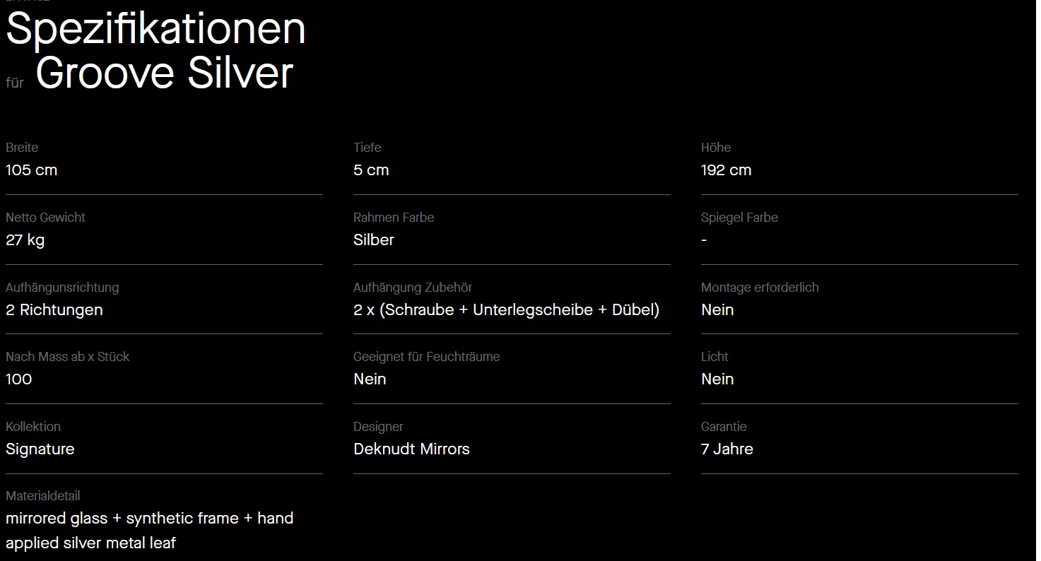 Das Linienspiel im Rahmen dieses neuen Spiegels „GROOVE“ ist modern. Die feine lineare Struktur zielt auf dem Mittelpunkt des Spiegels hin und ebenso zieht er die Blicke auf sich.Schlagmetall und eine dunkelgraue Patina verleihen dem Rahmen nicht nur die kunsthandwerkliche Oberfläche, sondern zugleich mehr Tiefe.
