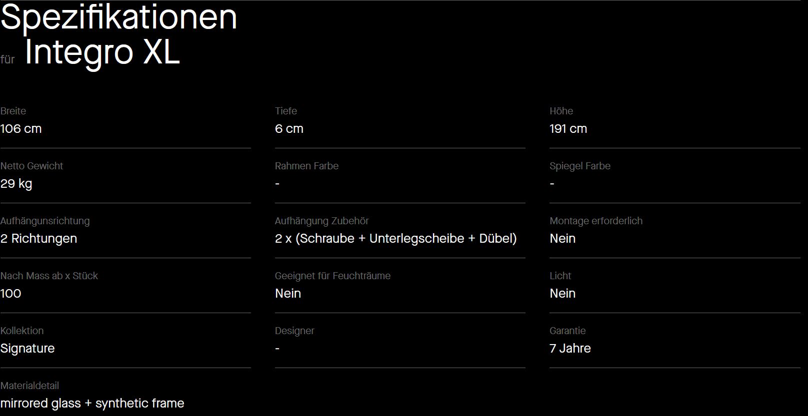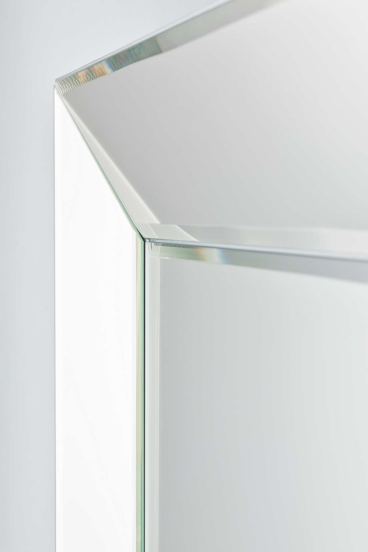 Der Spiegel "Integro" ist der ikonischste Spiegel aller Kollektionen von Deknudt Mirrors. In einer grau lackierten PU-"Schale" sind sehr fein gearbeitete Spiegelstücke in Form eines Rahmens eingelegt: 4 schmalere Stücke mit einer Facette an den Kanten, die als Rahmen dienen, und zentral der eigentliche Spiegel mit Facette. Die Seiten sind leicht nach geneigt, was dem Ganzen mehr Anziehungskraft und Tiefe verleiht. Dieser Spiegel passt in jedes Interieur wegen der Universalität des Designs und der neutralen Farbe.
