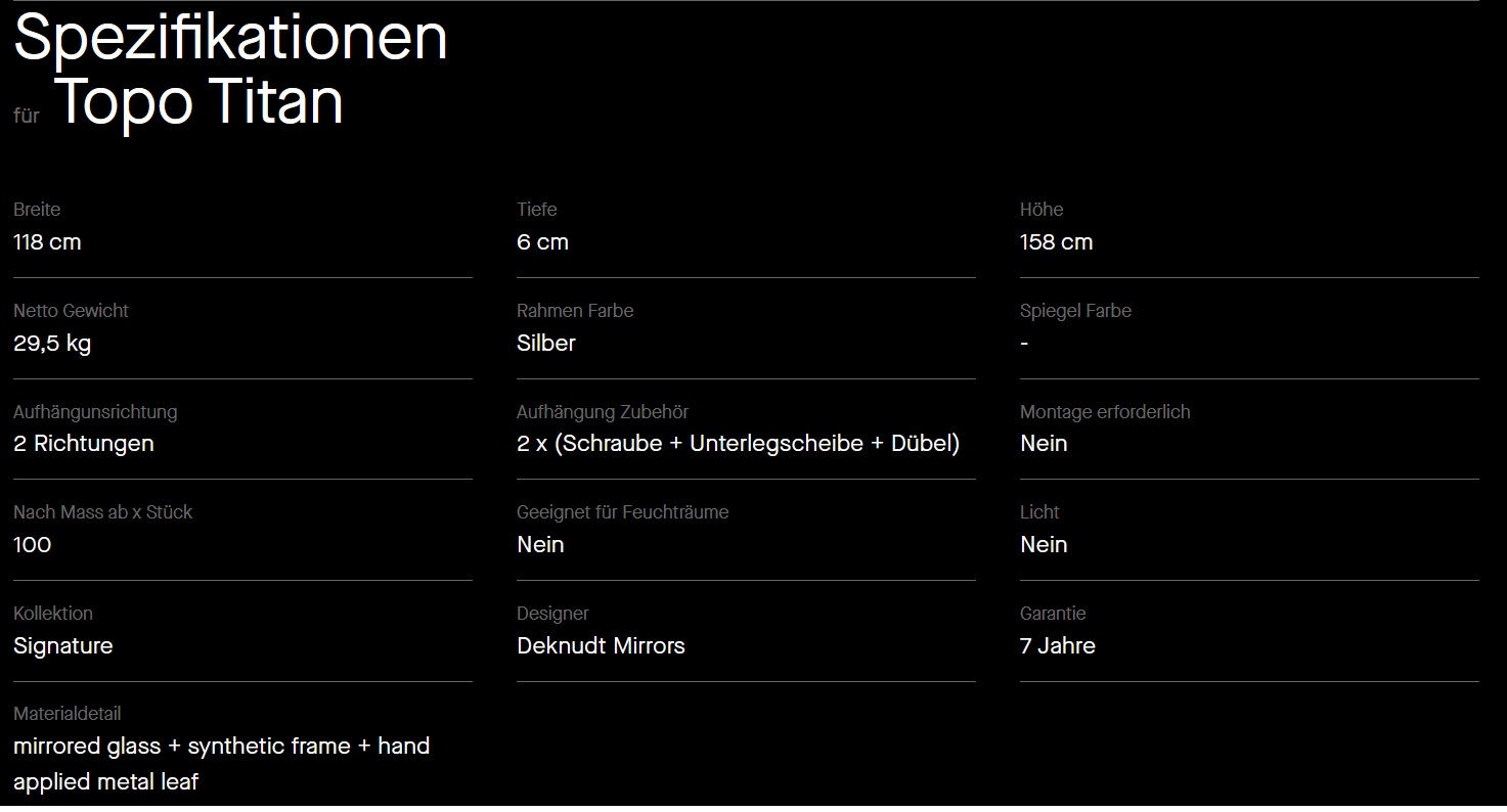 Die warme silberne Titanoptik wird durch einen handwerklichen schwarzen Akzent aufgewertet. So erhält dieser Spiegel