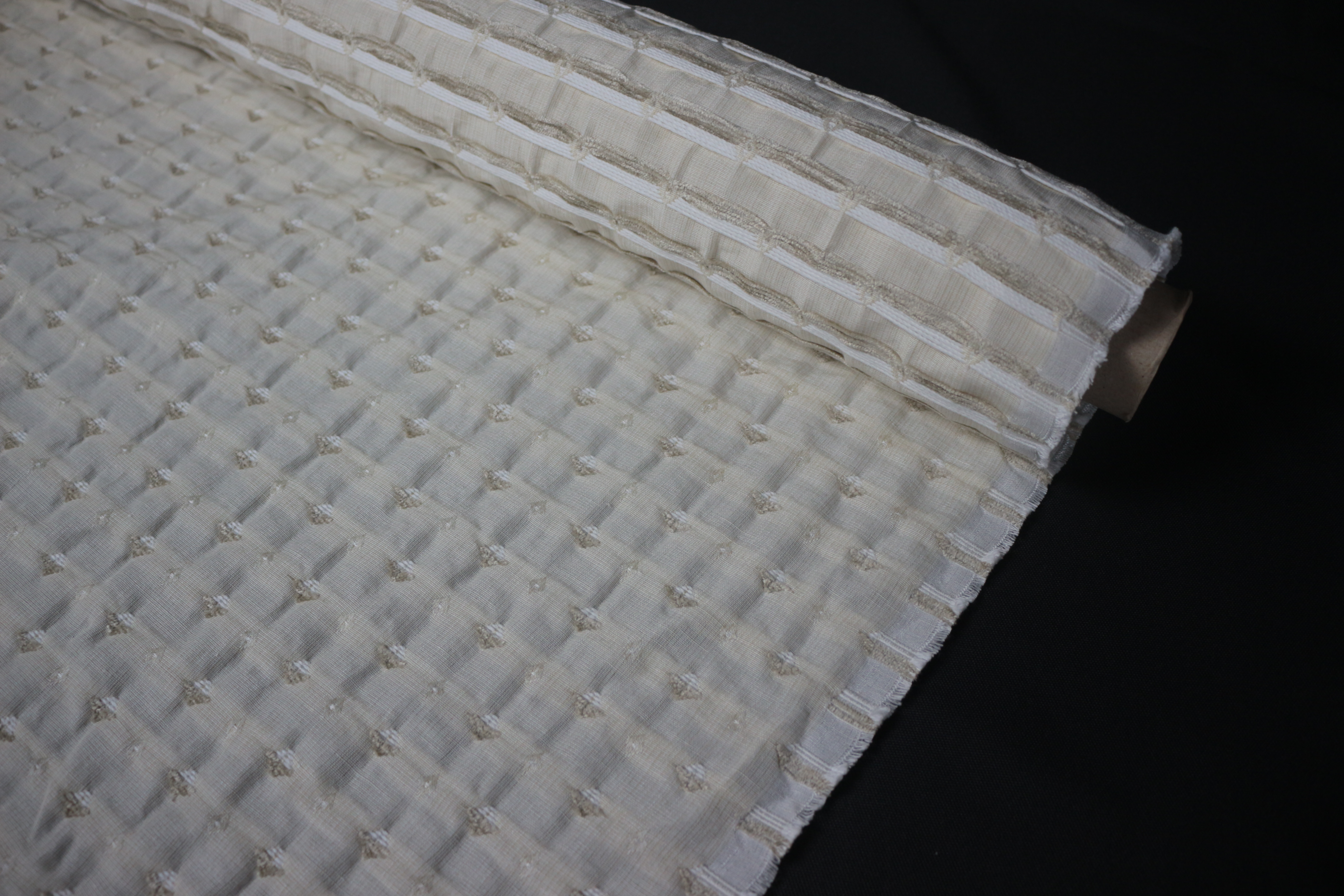 Polsterstoff aus feines Grundgewebe mit kleinen Chenille-Mustern