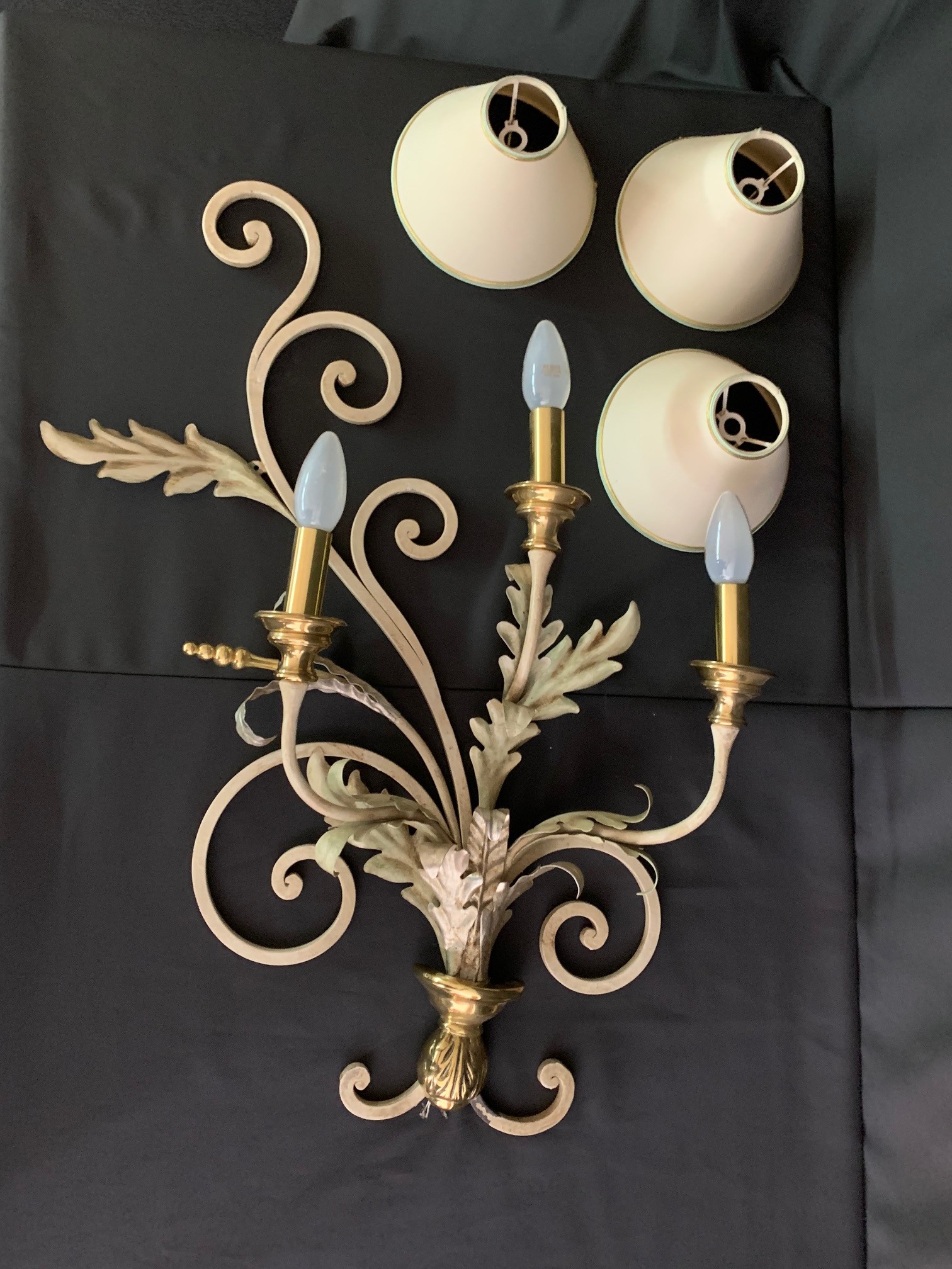 Geschmiedete Wandleuchte mit weiß-patinierter Blattverzierung