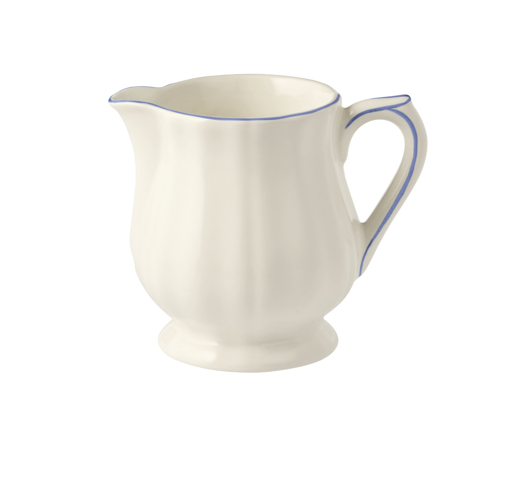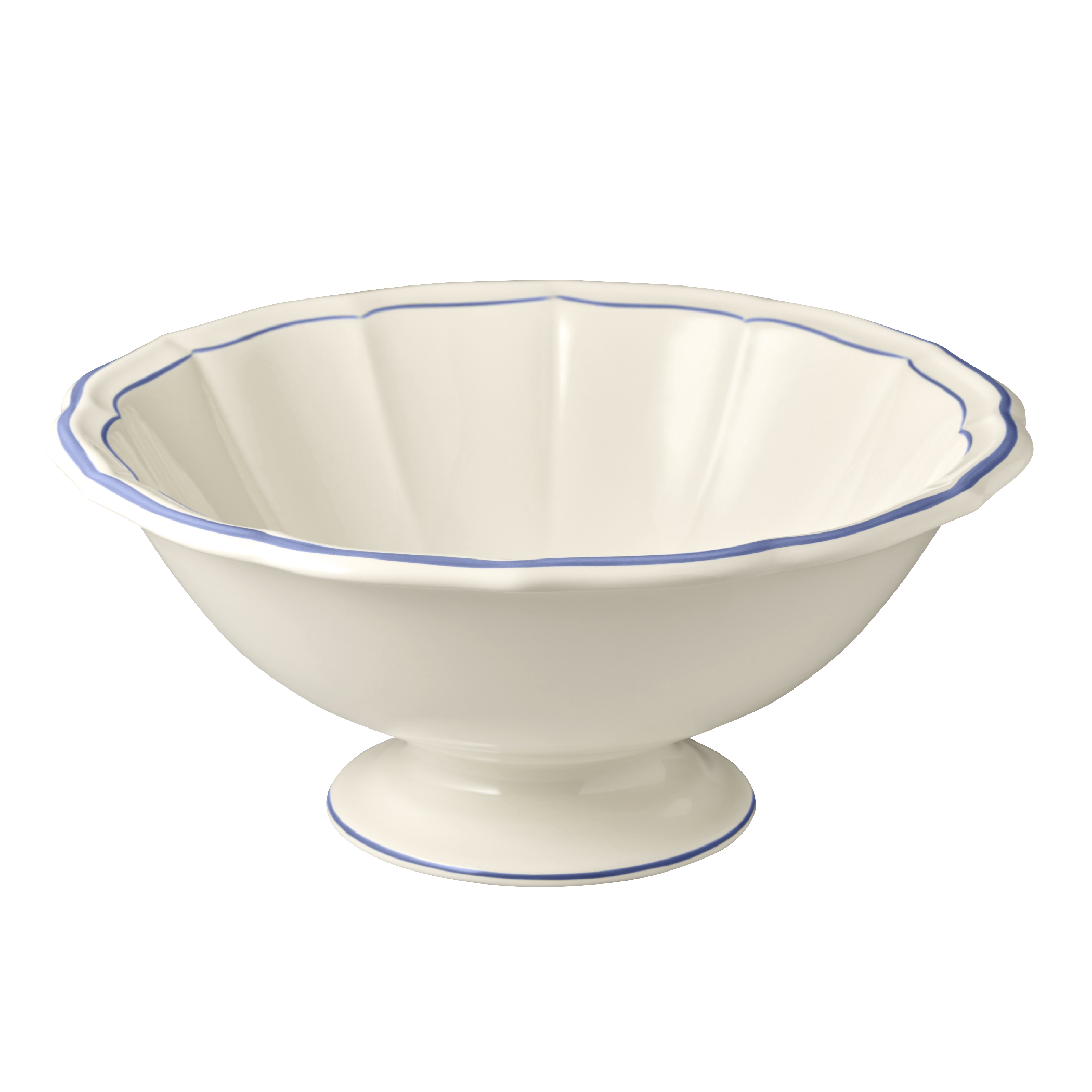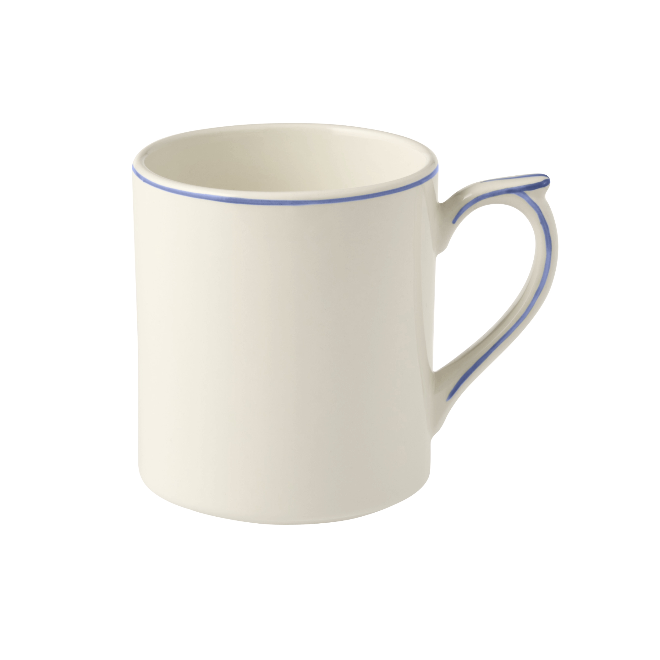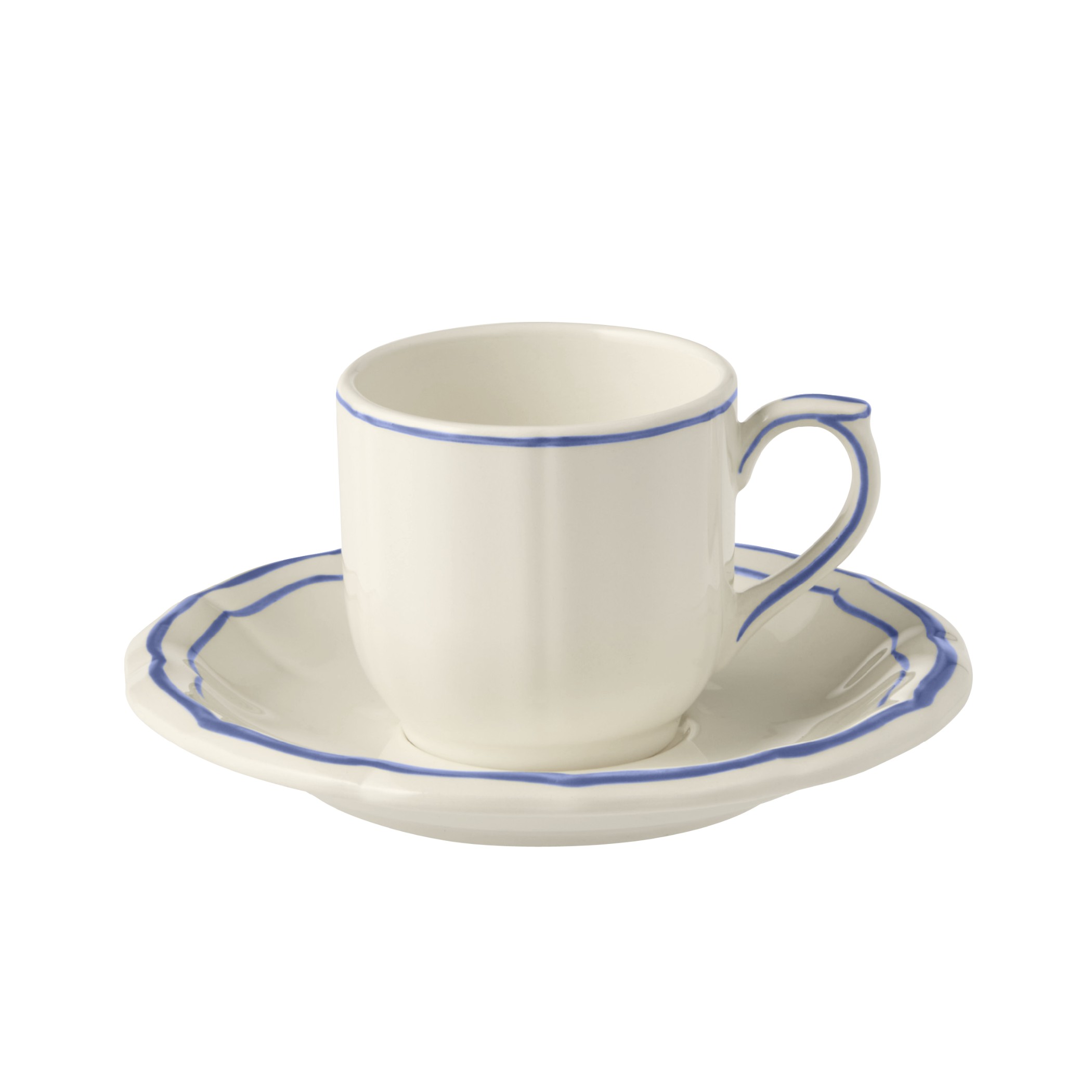 Die Geschirrserie Filet Bleu von Gien verkörpert den eleganten französischen Landhausstil.Der geschwungene Rand wird durch eine feine von Hand gemalte blaue Linie betont.Das Keramikgeschirr ist spülmaschinengeeignet.