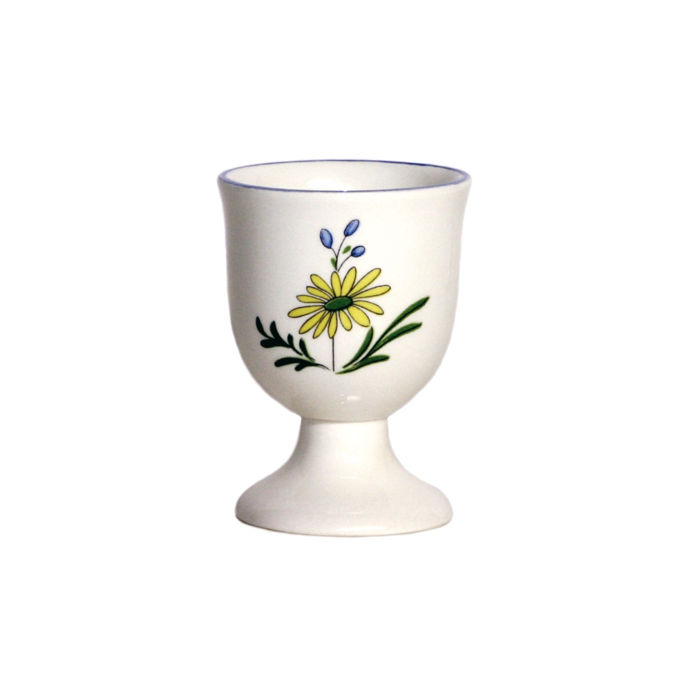 Der geschwungene Rand wird durch eine feine von Hand gemalte blaue Linie betont.