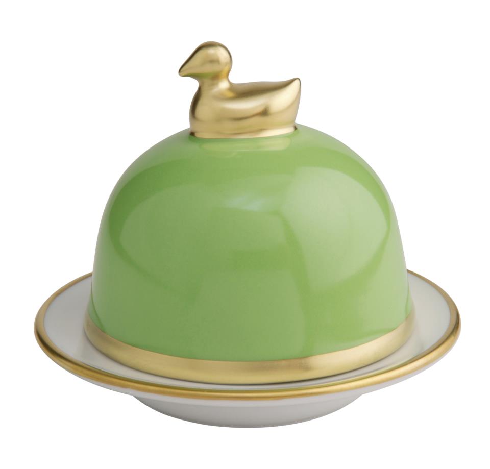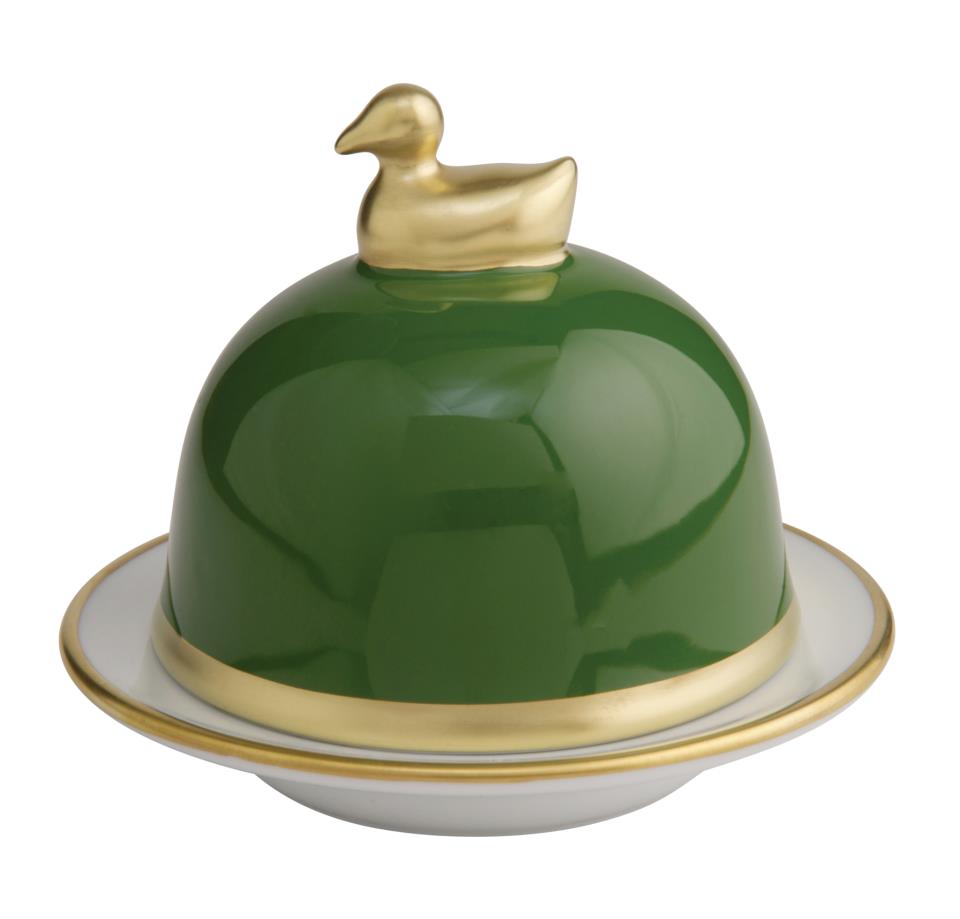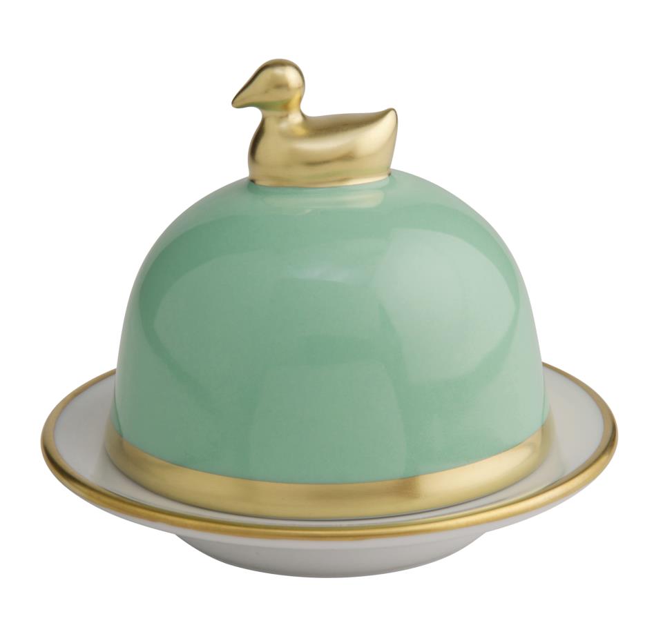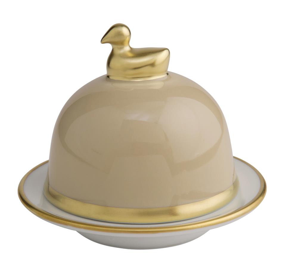 Die Butterenten der Kollektion Sous de Soleil von Legle steht für schlichte Formen, dekoriert mit einem Gold- oder Platinrand.
