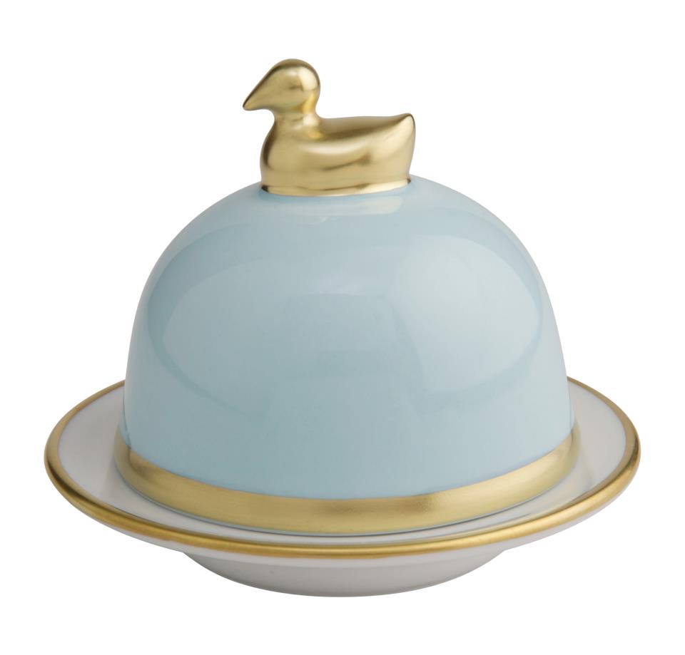 Die Butterenten der Kollektion Sous de Soleil von Legle steht für schlichte Formen, dekoriert mit einem Gold- oder Platinrand.