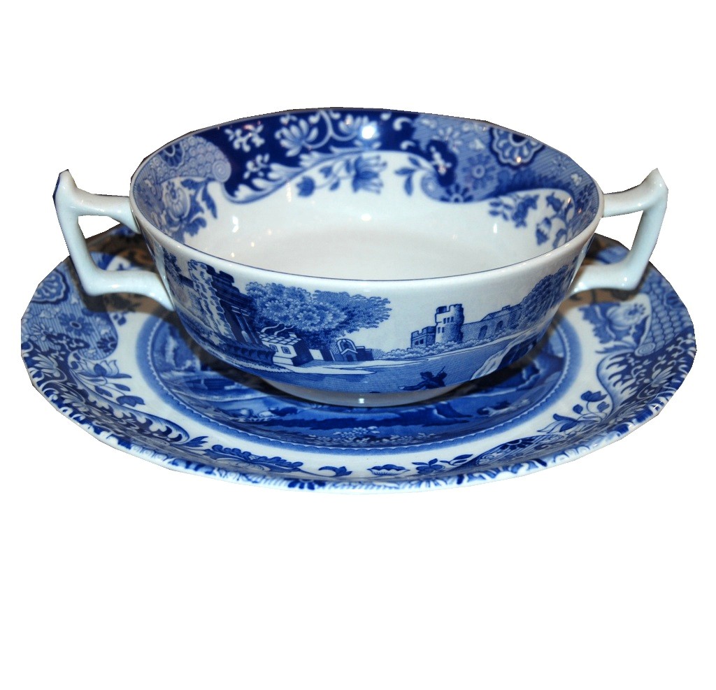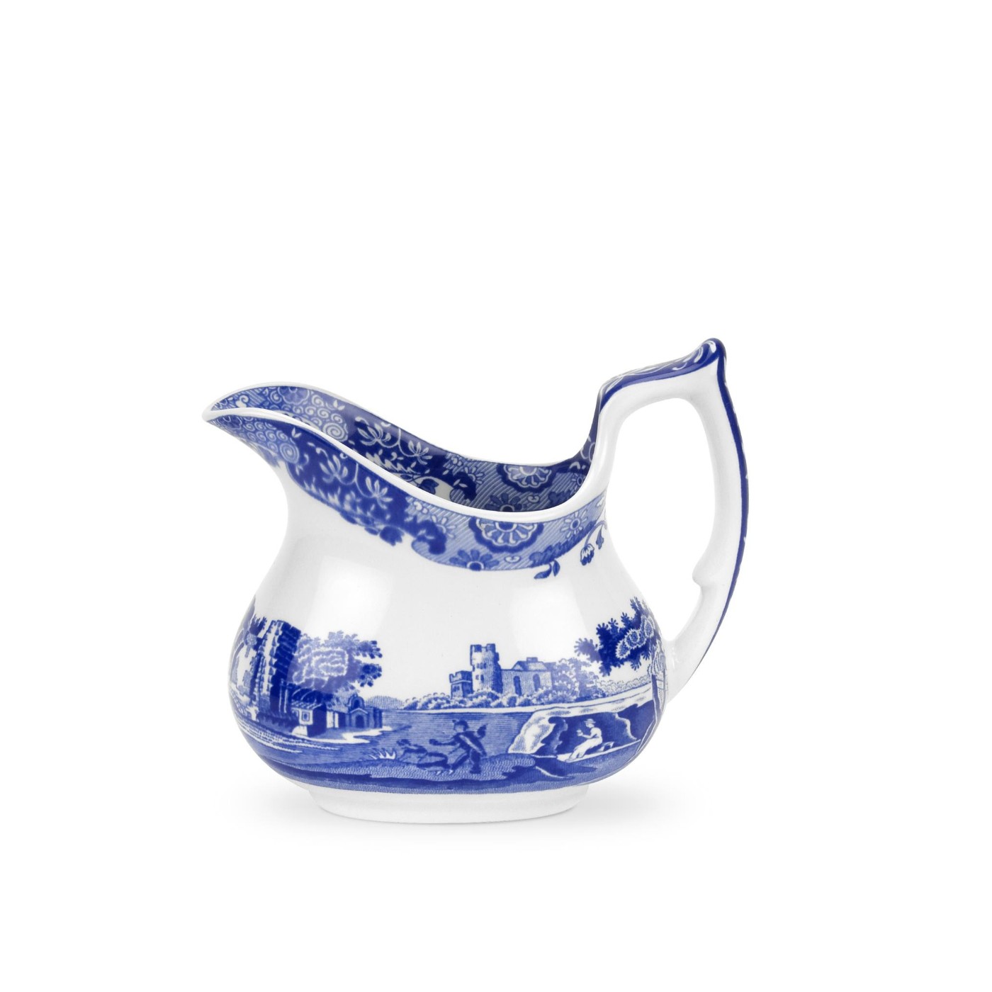 Die Serie Blue Italian von Spode wird bereits seit 1816 produziert. Jedes Geschirrstück zeigt eine italienische Landschaftsszene. Mittels Kupferdruck wird die blaue Farbe auf die Geschirrteile gebracht. Das Hartsteingut ist extrem rubust, ofen- und spülmaschinenfest.