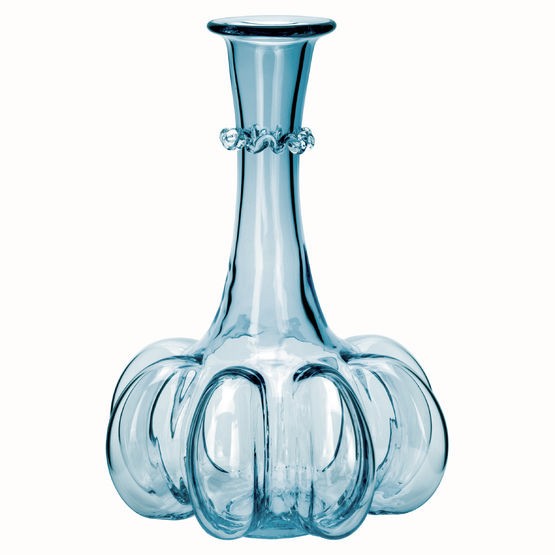 Kürbisflasche ist 210 mm hoch. Farbauswahl: hellblau, hellgrün, goldrubin,