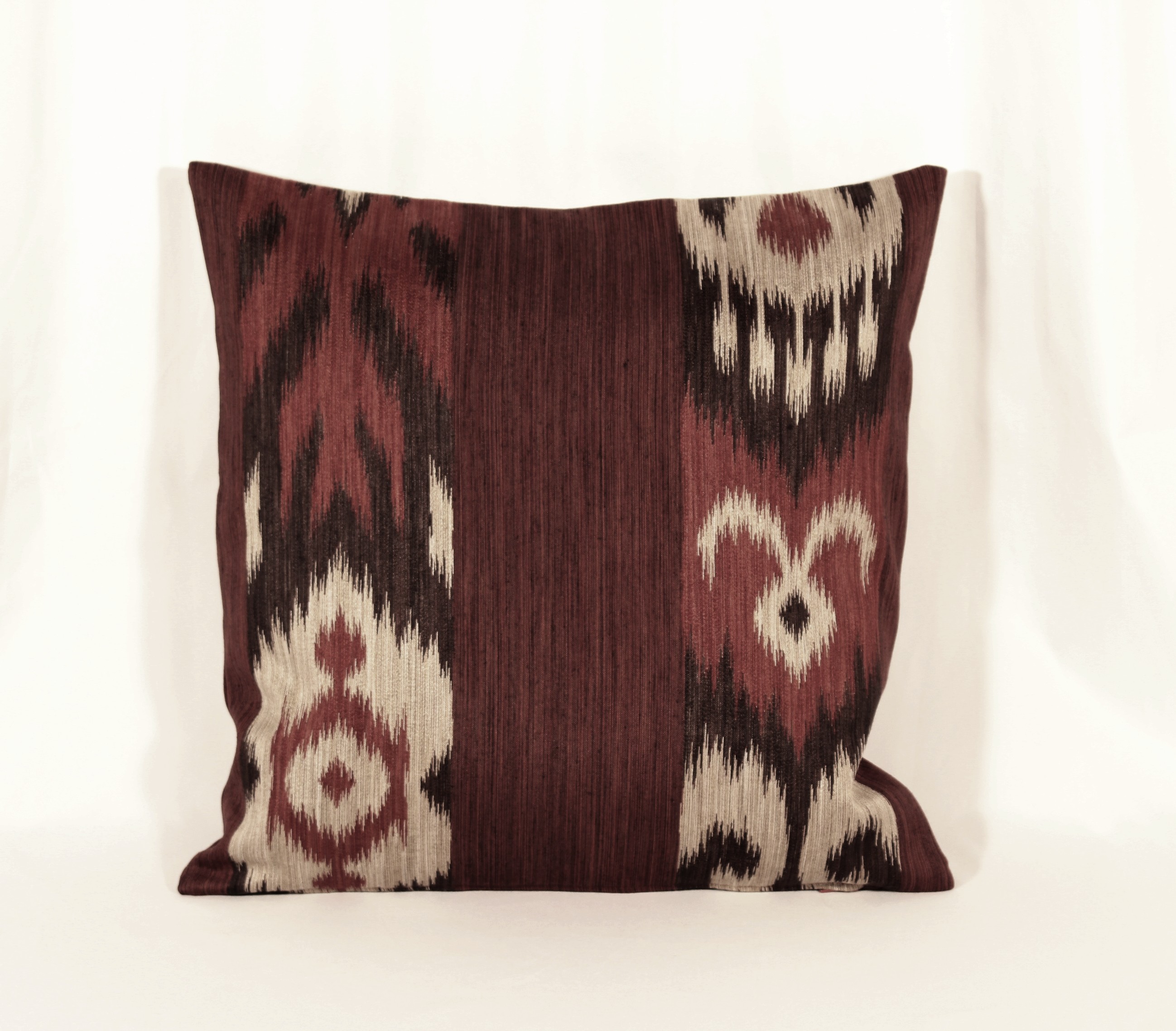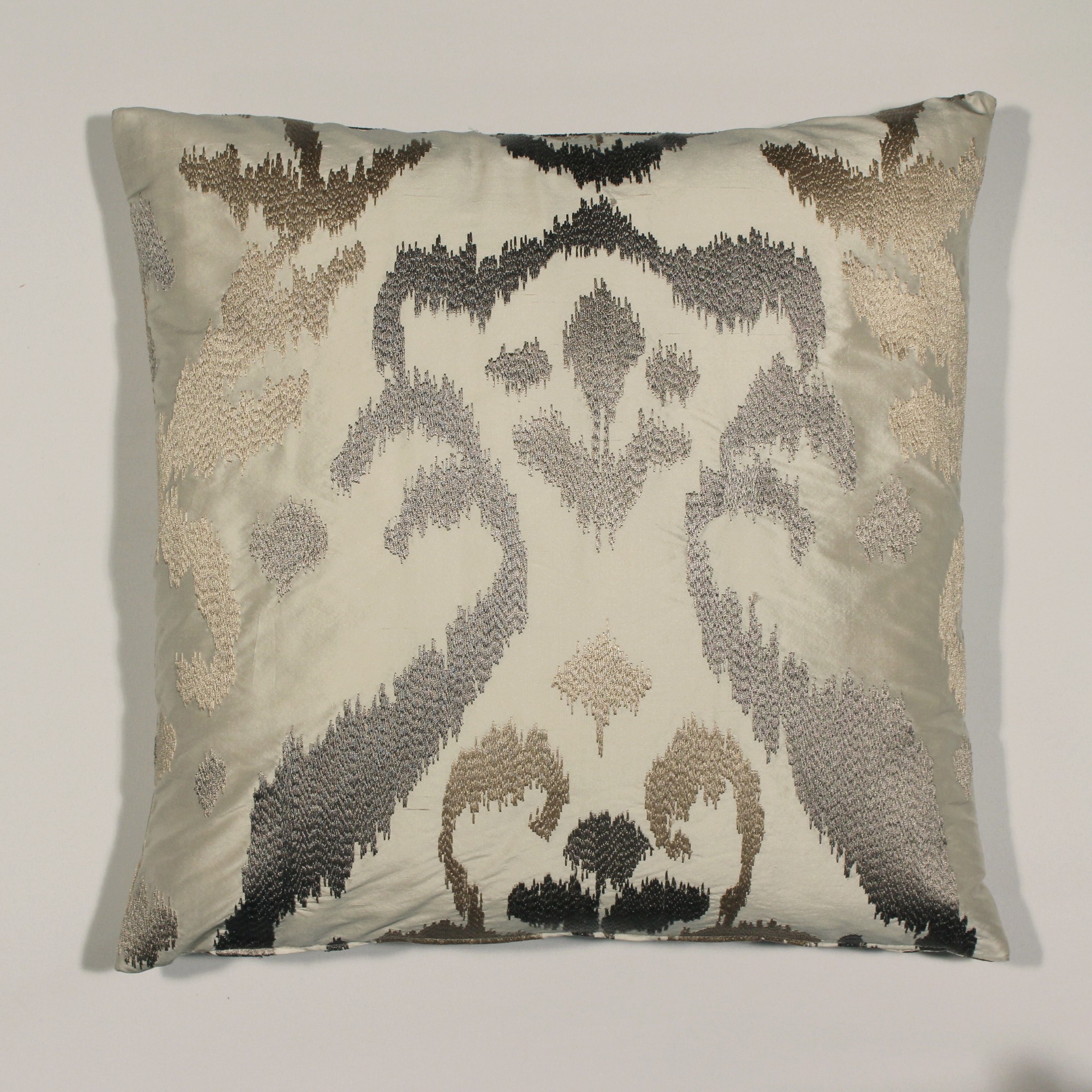 Edle Kissenhülle mit aufwendiger Ikatstickerei, 45 x 45 cm.