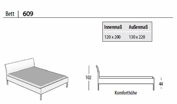 Außenmaß: 130 x 220 cm, Höhe Oberkante der Bettrahmen 44 cm , Höhe Kopfteil 96 cm