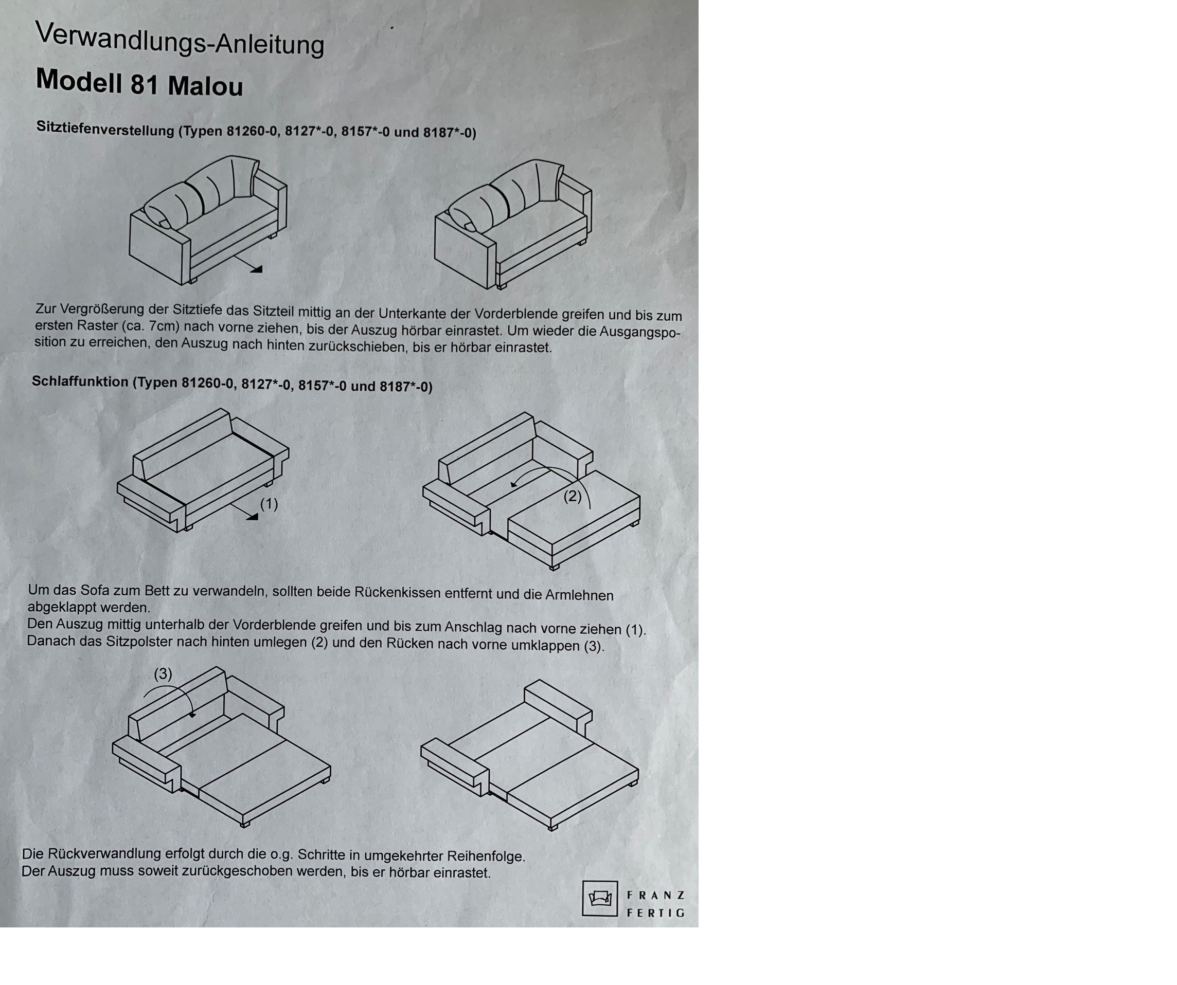 als komfortable Schlafmöglichkeit verwendet zu werden. Die Sitzfläche wird dazu hochgeklappt und nach vorne ausgezogen.