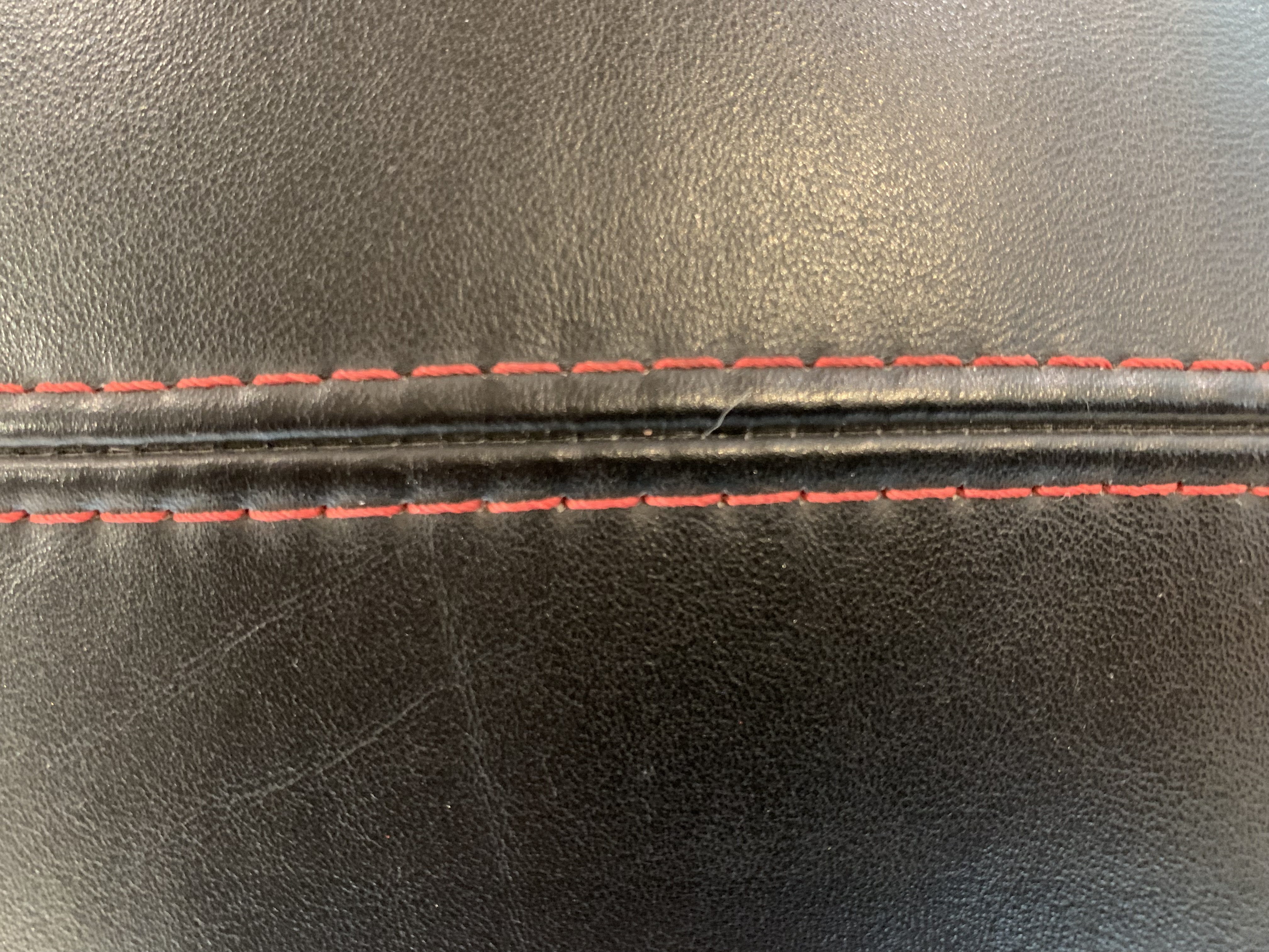 Leder: Bimardo 100 nero, Garnfarbe: rot (Detailabbildung)