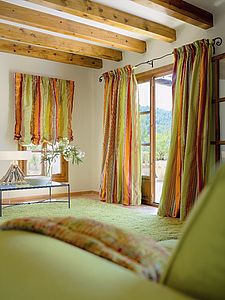 Außer Fensterdekorationen wie Raffrollos, Dekoschals und Gardinen fertigen wir auch gerne