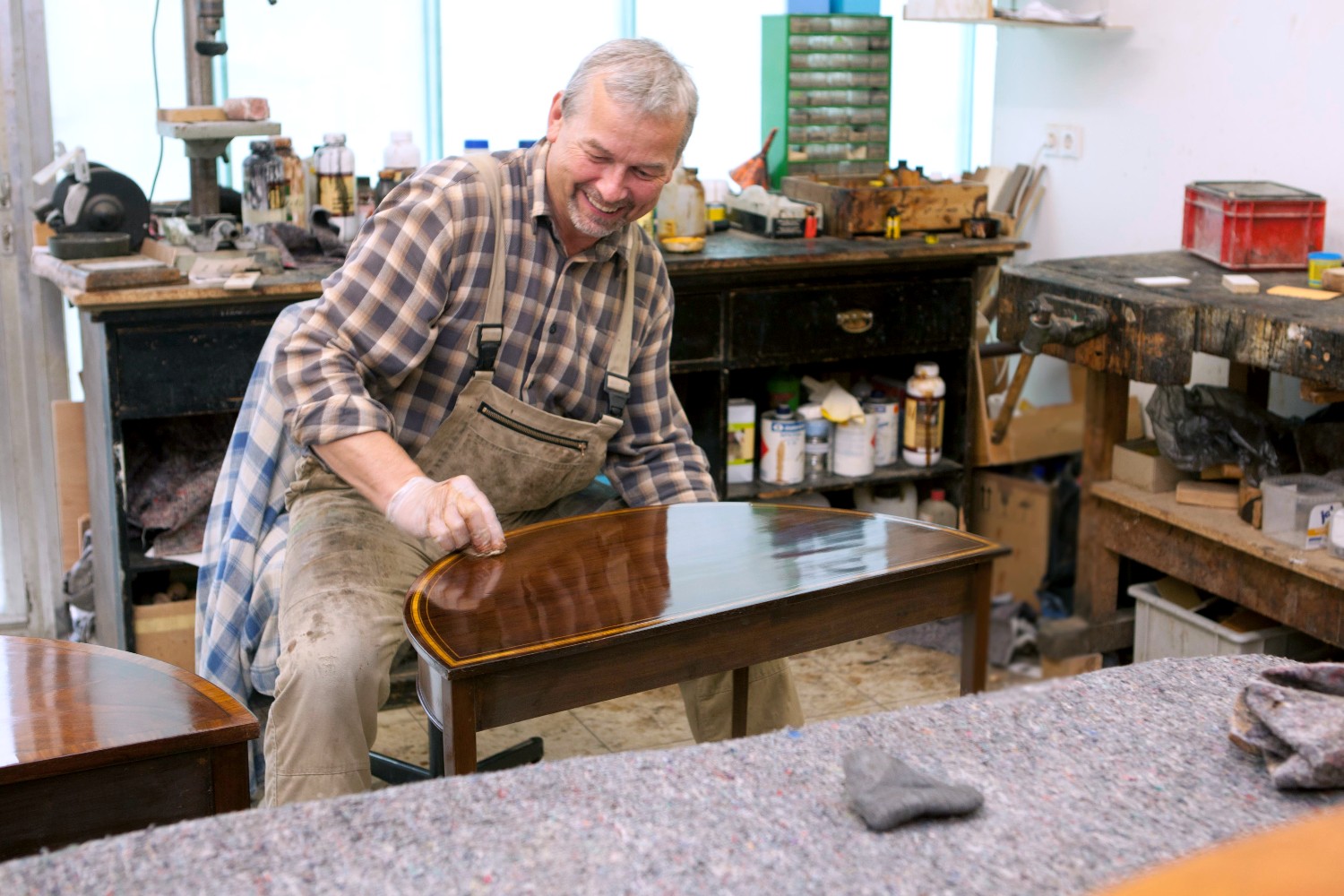 Seit über 40 Jahren restaurieren wir Antiquitäten in liebevoller Handarbeit. Wir wenden nur traditionelle Arbeitsverfahren an. So werden Verleimungen nur mit Knochenleim und Handpolituren (wenn nicht anders gewünscht) mit Schelllack ausgeführt.
